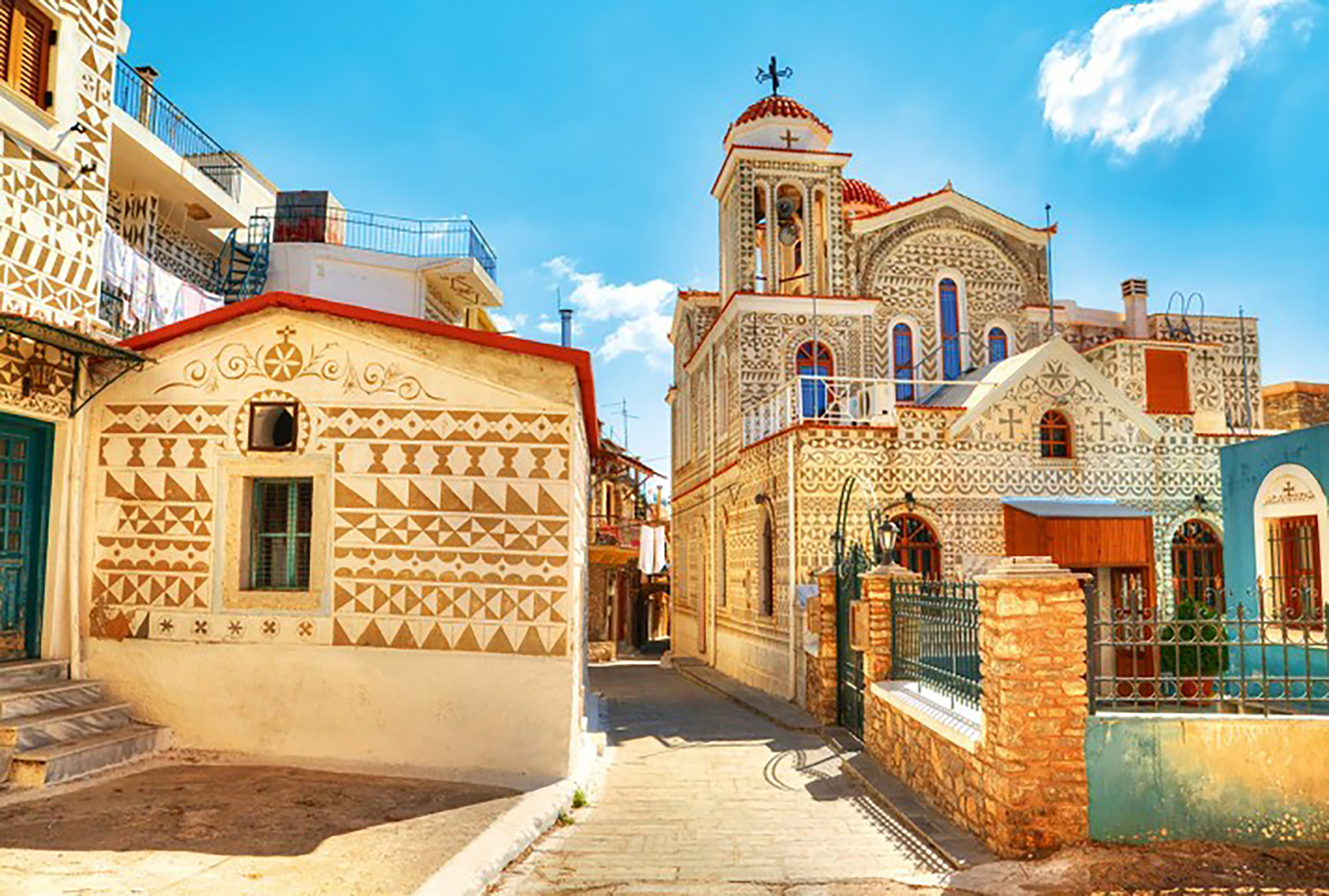 After breakfast at our hotel, we take our place in our vehicle and start our tour towards the villages in the south of the island called Mastihahoria, which has the monopoly on mastic production in the world. Our first stop on our tour is Armolia Village, famous for its handmade ceramics for hundreds of years, and we take a short break to visit one of the famous ceramic workshops. Then, we move on to Mesta, the labyrinth village, one of the other popular villages on the island. You will get lost in time during our tour in this ancient medieval village, famous for its magnificent medieval architecture and Taksiarhis Church, one of the most important and magnificent churches on the island of Chios. Like other villages, this village, which was built to protect against pirate attacks, has only two entrances and exits; in case of danger, these doors were closed and security was ensured in this way. After our tours, we reach the village square and have a coffee break. Afterwards, we set off towards the fairytale village of Pyrgi. Pyrgi Village is the most frequented place for tourists visiting the island with its narrow streets bearing traces of the Middle Ages, houses built adjacent to each other to protect against pirate attacks and colored with a special plaster technique. We think that you will be amazed by the geometric patterned houses of this village, where you will feel like you are traveling in time. After completing our village visits within the scope of the South Island tour, we go to a tavern by the sea for lunch. After completing our visits within the scope of the Gumney Island tour, we set off to board our ferry to Chios Port. After our journey, we reach Çeşme Port. We complete our passport procedures and meet with our vehicle and captain waiting for us at the port. With the happiness of having had a different experience and discovering another island, we set off on our return journey to Marmaris and reach Marmaris at midnight. We leave you at the points where we picked you up and say goodbye until we meet on other tours.